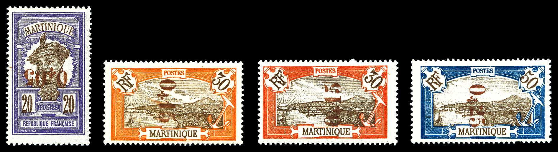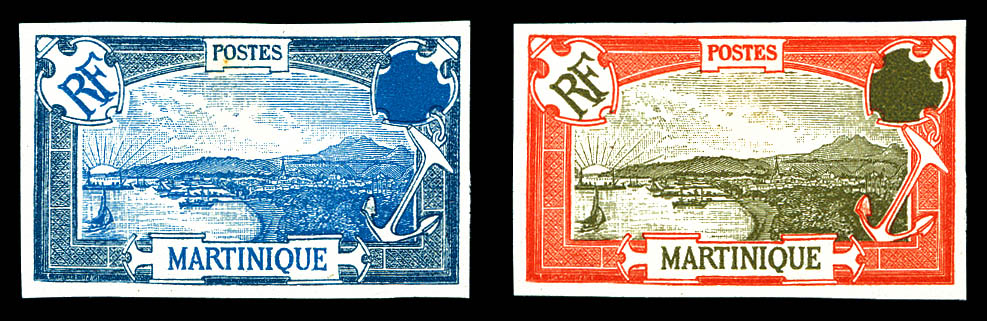 Fort de France: 2 essais non dentelés sans la valeur, de couleur différentes. TB (signés Scheller/certificat) Qualité: (*) (Image)