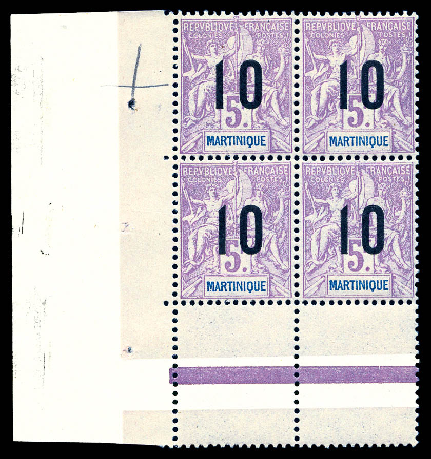 N°81Aa, 10 sur 5F violet: chiffres espacés tenant à normaux dans un bloc de quatre cdf, SUP (certificat) Qualité: ** Cote: 512