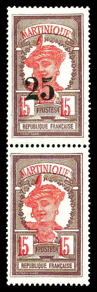 N°85, 25c s 15c: surchargé tenant à sans surcharge (surcharge à sec). TTB (certificat) Qualité: ** (Image)