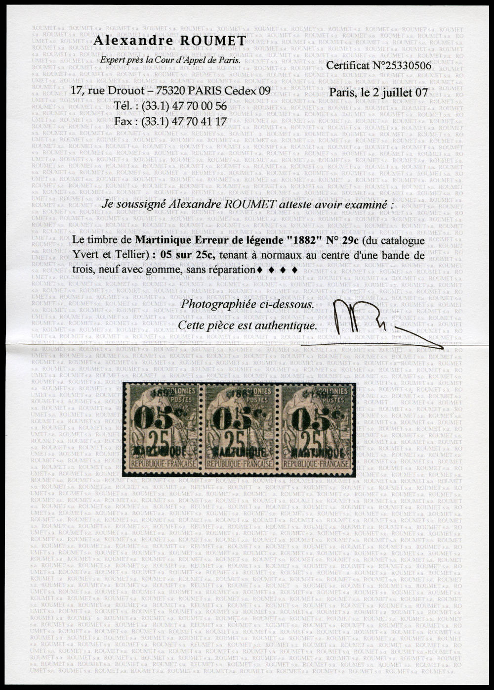 N°29ca, 05 sur 25c: erreurs de chiffres 1882 au lieu de 1892 tenant à normaux dans une bande de 3. SUP (certificats) Qualité: *