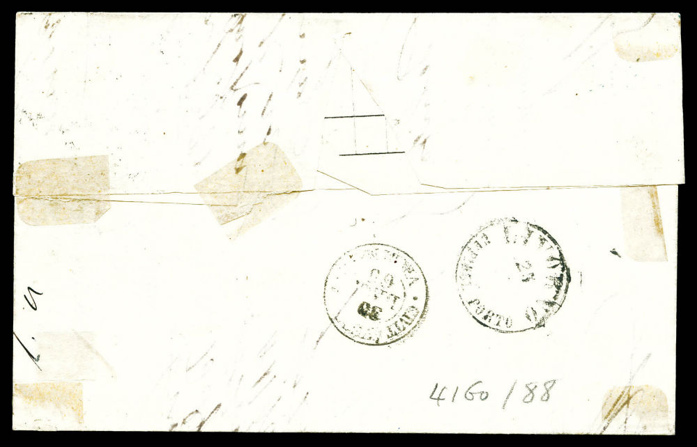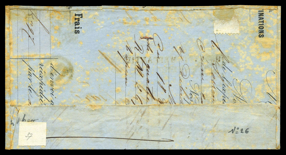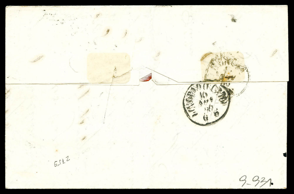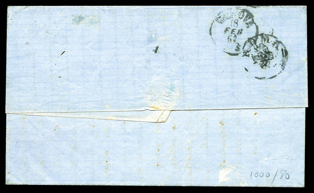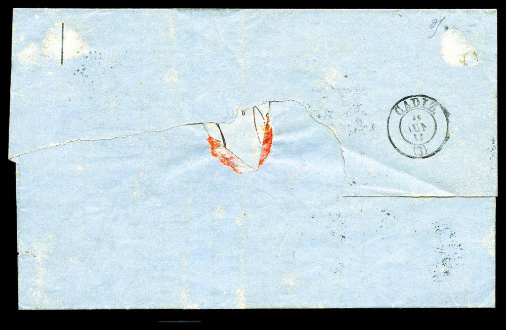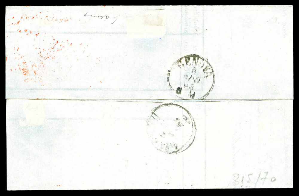 N°23, 1865, 40c Empire dentelé obl GRAND VIA DI MARE en noir sur lettre de MARSEILLE pour GENES, RARE et SUPERBE. (certificat) Qualité: Oblitéré (Image) (imagea)