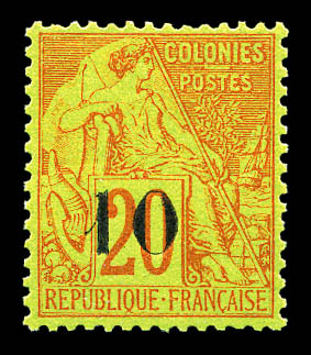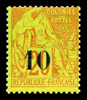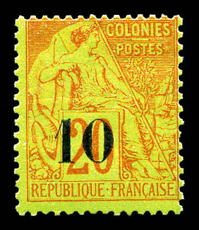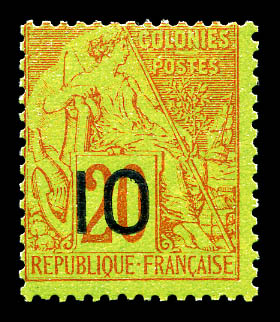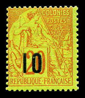 N°4A, 10 sur 20c brique sur vert TYPE II. SUPERBE. R. (certificat) Qualité: ** Cote: 2300 euros (Image)