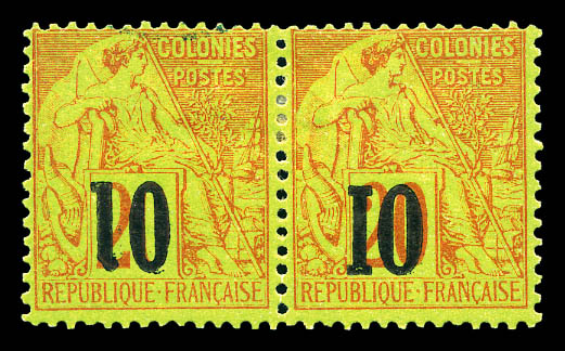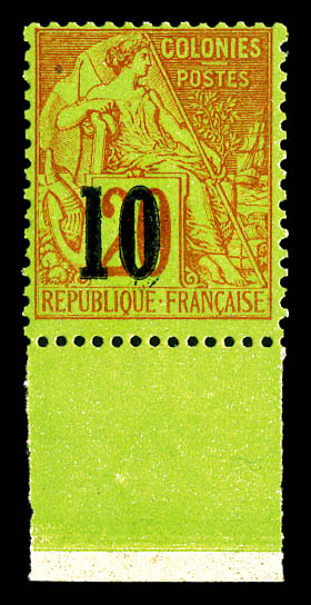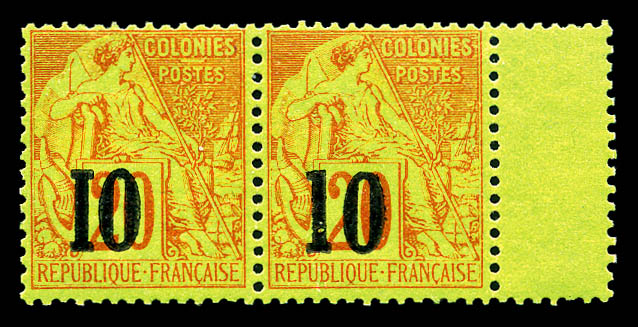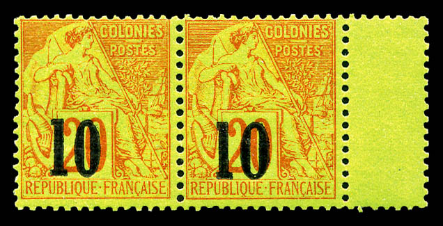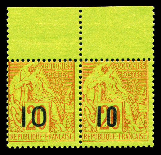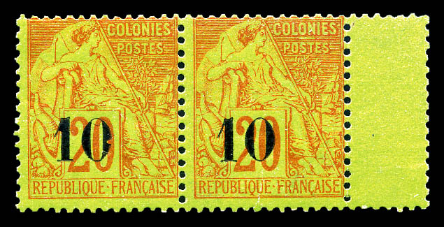 N°4a, 10 sur 20c brique s vert Type I: Chiffre '0' brisé tenant à normal, bord de feuille latéral. SUPERBE. R.R. (signé
