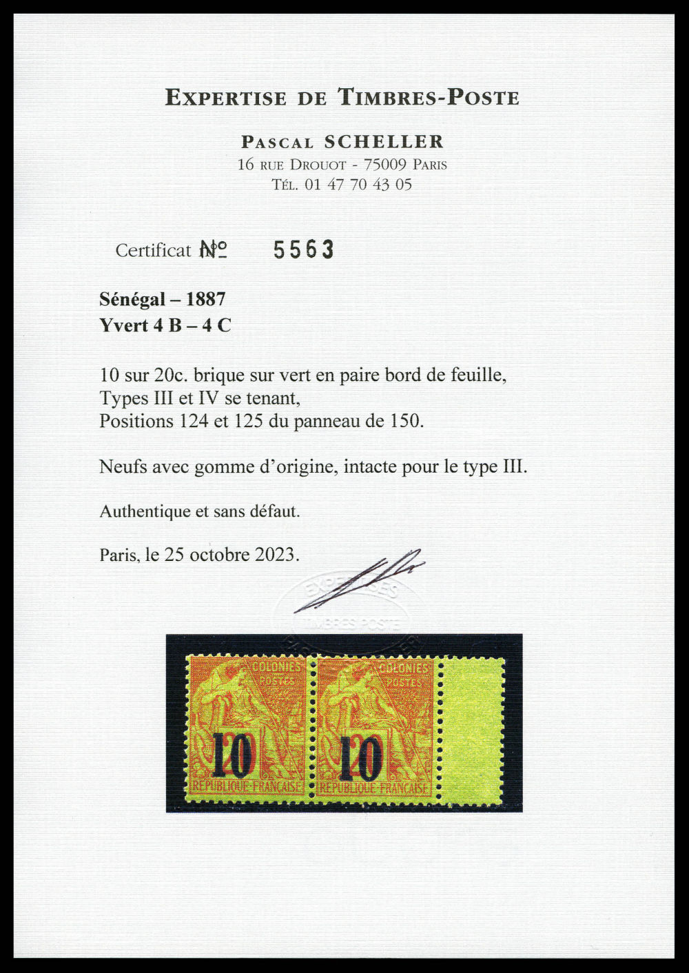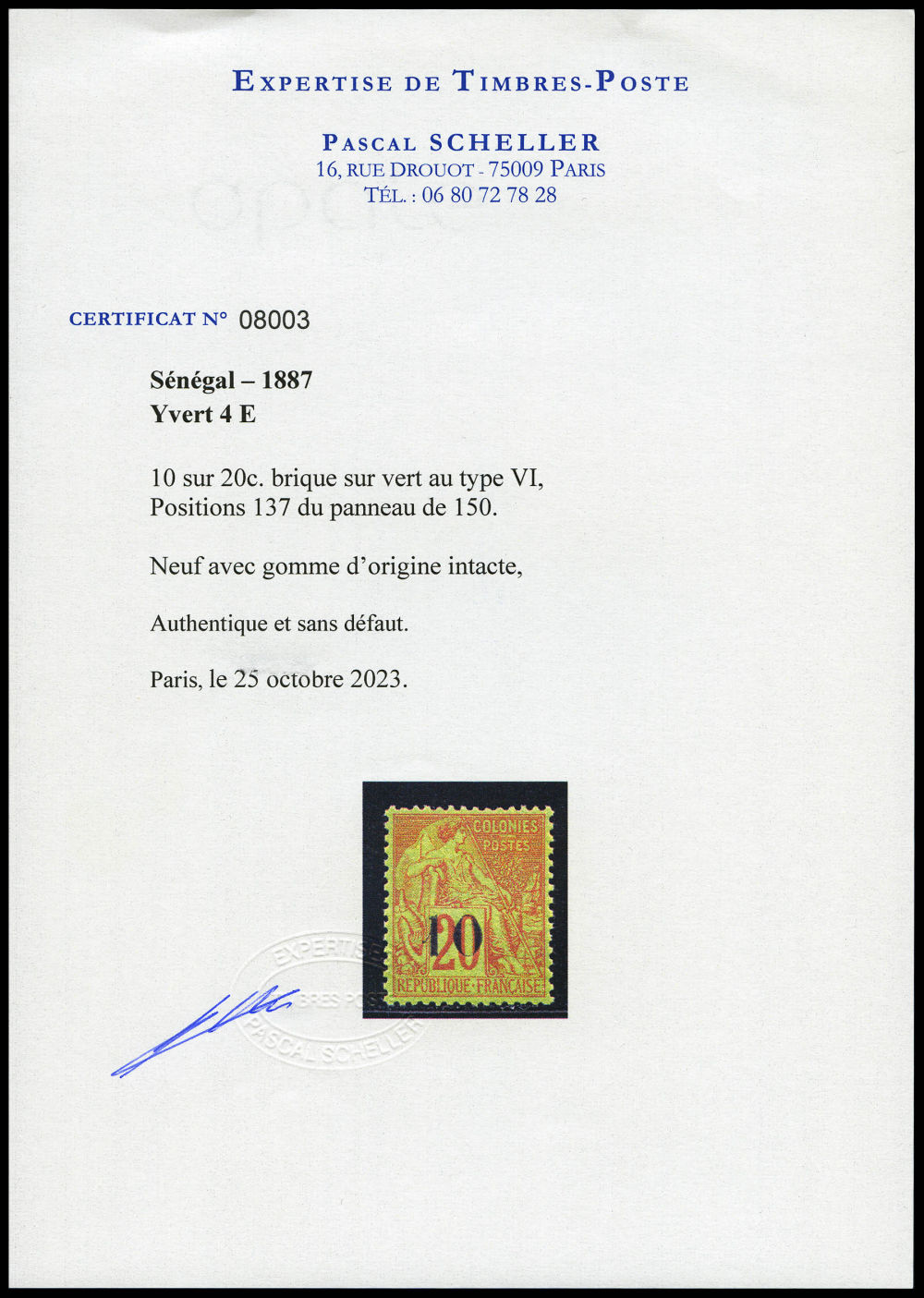 (certificat) Qualité: ** Cote: 4200 euros (Image)