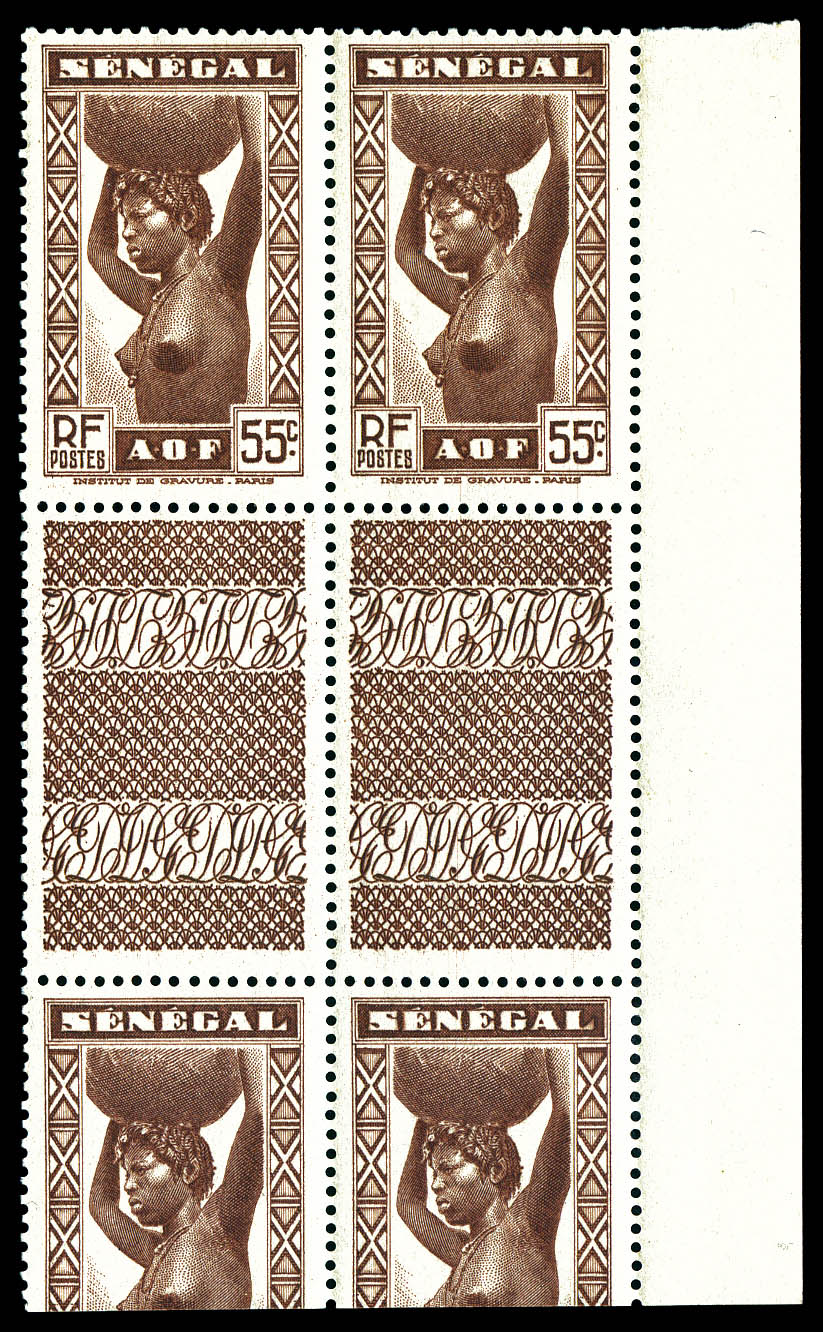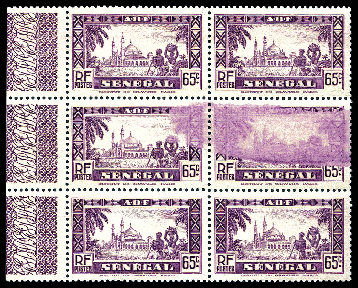 N°126, 65c Mosquée de Djourbel, variété d'essuyage sur bloc de 6 exemplaires bdf. TTB Qualité: ** (Image)