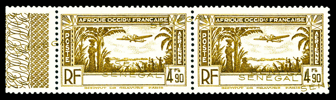 N°16b, 4f 90 bistre-olive: Triple légende dont une à cheval en paire bdf (1ex*). SUP. R. (signé/certificat) Qualité: ** Cote: 1125