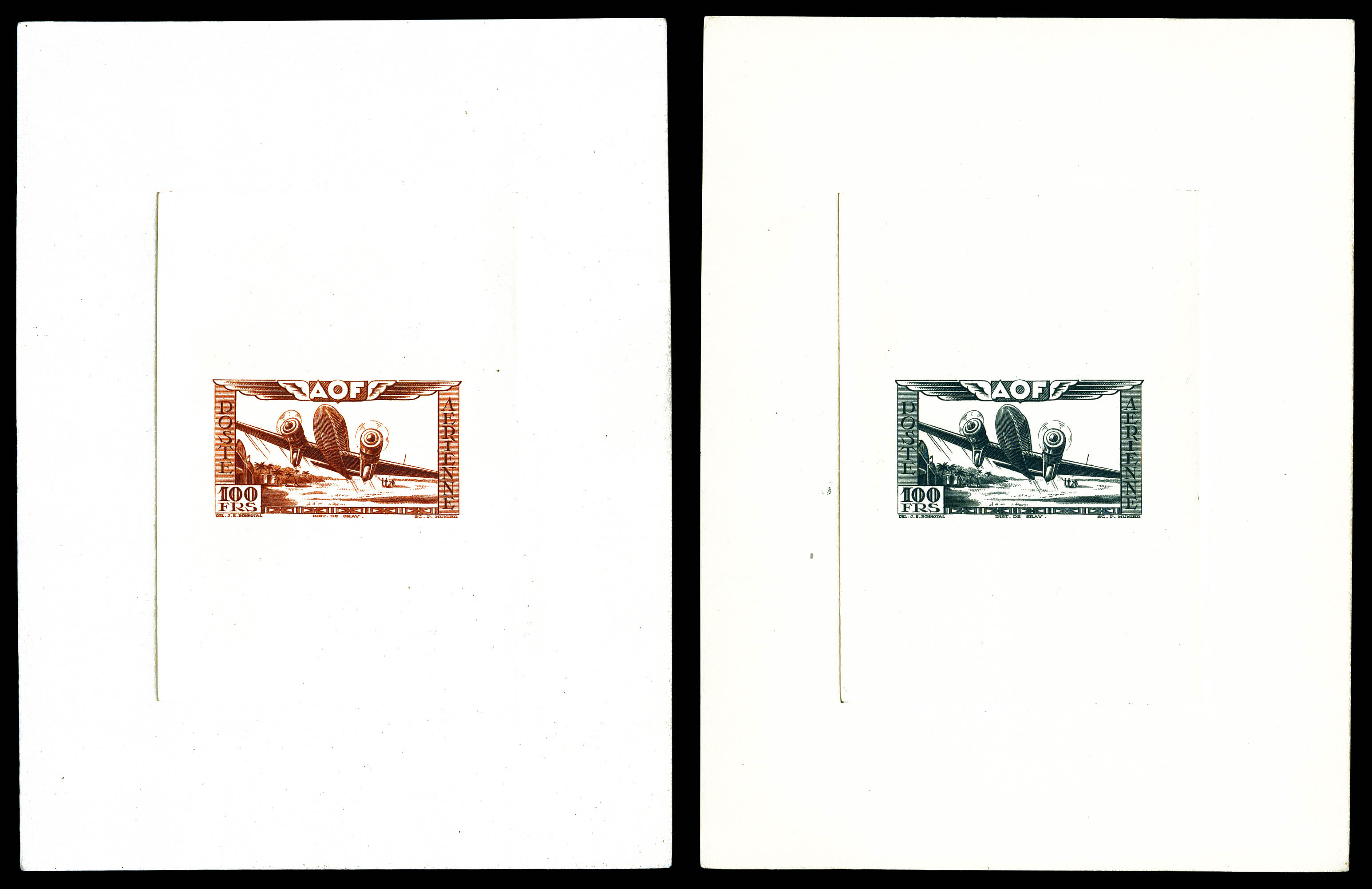 N°30, Non émis, 100f: 2 épreuves d'artiste, noire et brun-rouge. TTB (certificat) Qualité: (*) (Image)