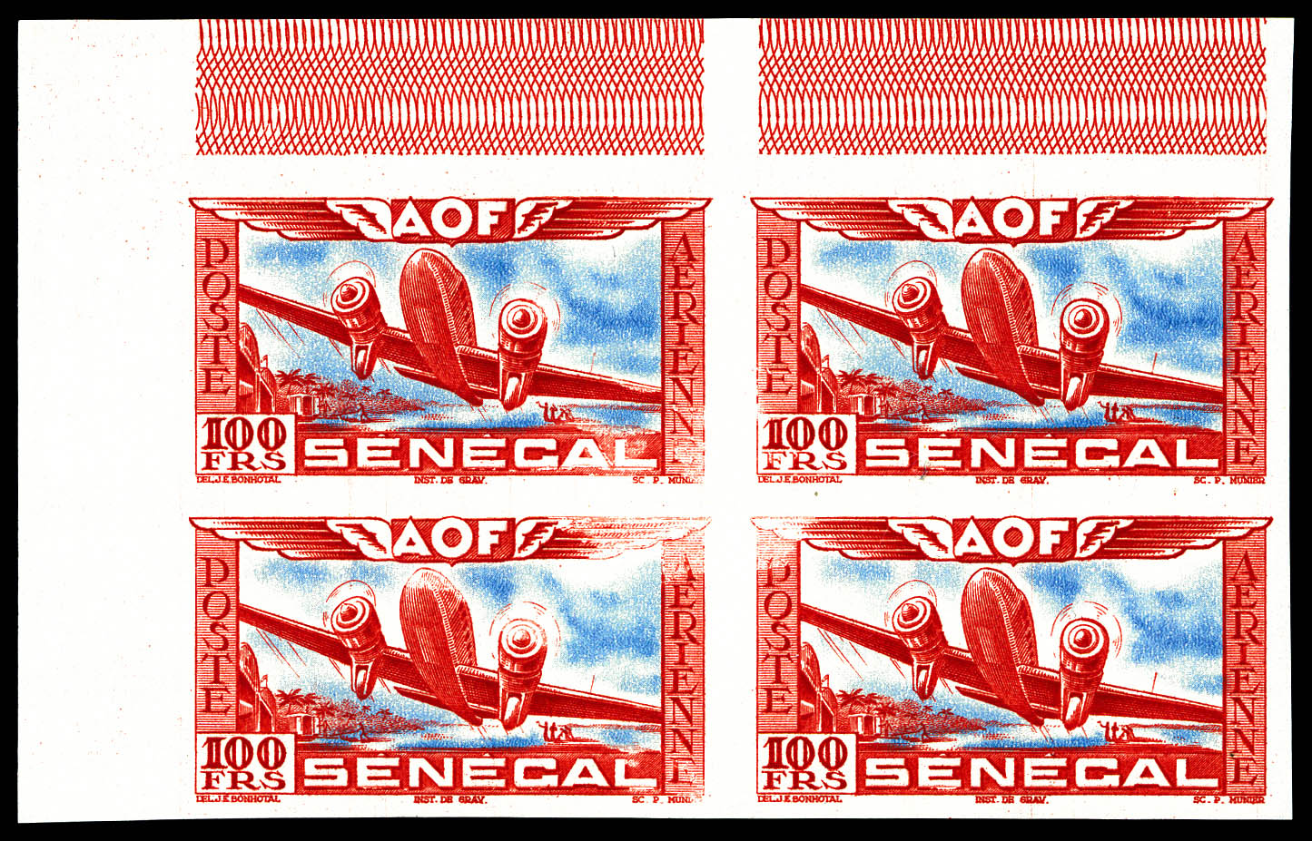 N°30, 100F, Essai non dentelé rouge-carmin et outremer en bloc de quatre cdf. TTB (certificat) Qualité: ** (Image)