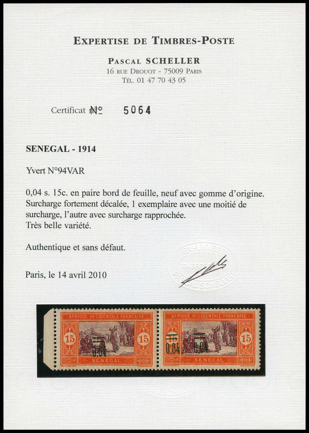 N°93c, 1 seule surcharge '0.04' tenant à 2 surcharges '0.04' dont 1 déplacée. SUP (certificat) Qualité: * Cote: 800 euros (Image) (imagea)