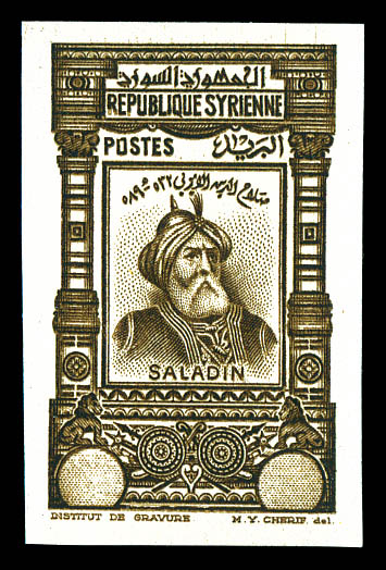 N°238, Saladin sépia, NON DENTELE sans valeur dans le cartouche (50pi). SUP. R. (certificat) Qualité: ** (Image)