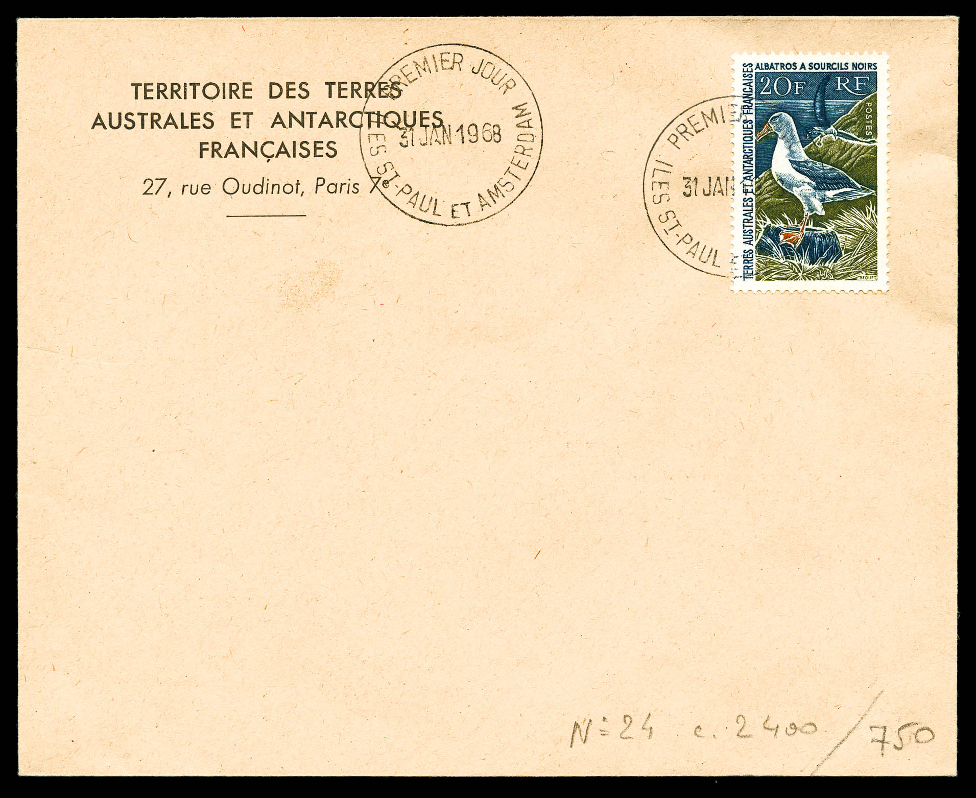 4022 imageN°24, 20f Albatros: obl 1er Jour de St Paul sur enveloppe des TAAF. TB Qualité: Oblitéré Cote: 320 euros (Image)