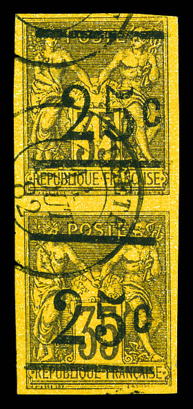 4025 imageN°1, 25c sur 35c violet-noir sur jaune en paire verticale. SUP. R. (signée Calves/certificat) Qualité: Oblitéré Cote: 1260 euros (Image)