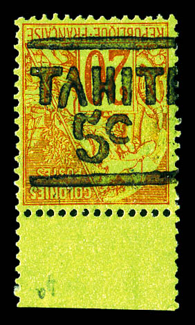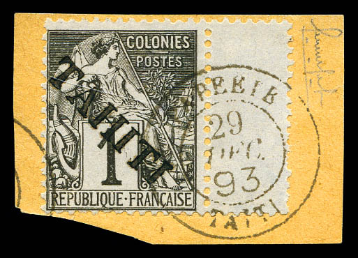 4035 imageN°7a, 1c noir sur azuré, surcharge de haut en bas, bord de feuille latéral obl càd de PAPEETE le 29 dec 93 sur son support. SUP. R. (signé Brun/certificat) Qualité: Oblitéré Cote: 1575 euros (Image)
