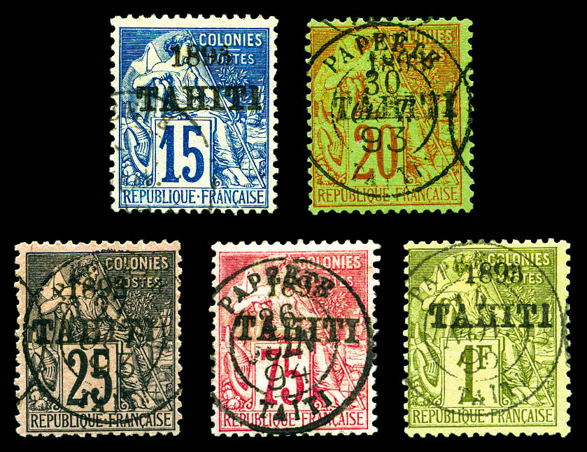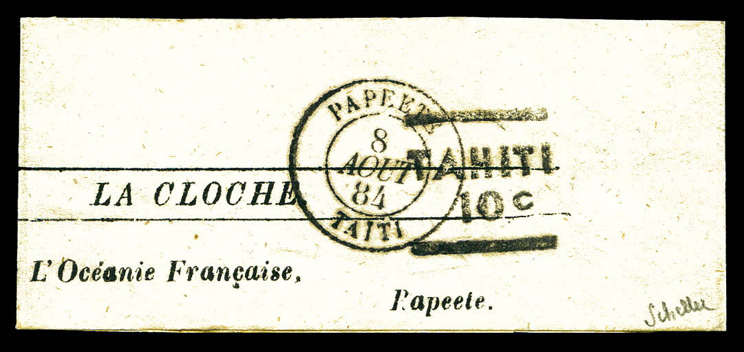 4034 imageN°5A, 10c, bande complète obl càd PAPEETE du 8 août 1884. SUP (signé Scheller) Qualité: Oblitéré Cote: 400 euros (Image)