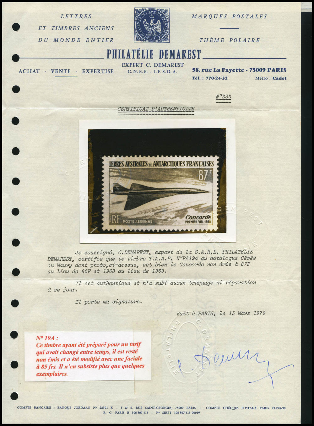 4023 nh imageN°19a, Non émis: Concorde, faciale 87F au lieu de 85F, un des rares exemplaires connus, SUPERBE (certificats) Qualité: ** Cote: 7000 euros (Image) (imagea) (All Images)