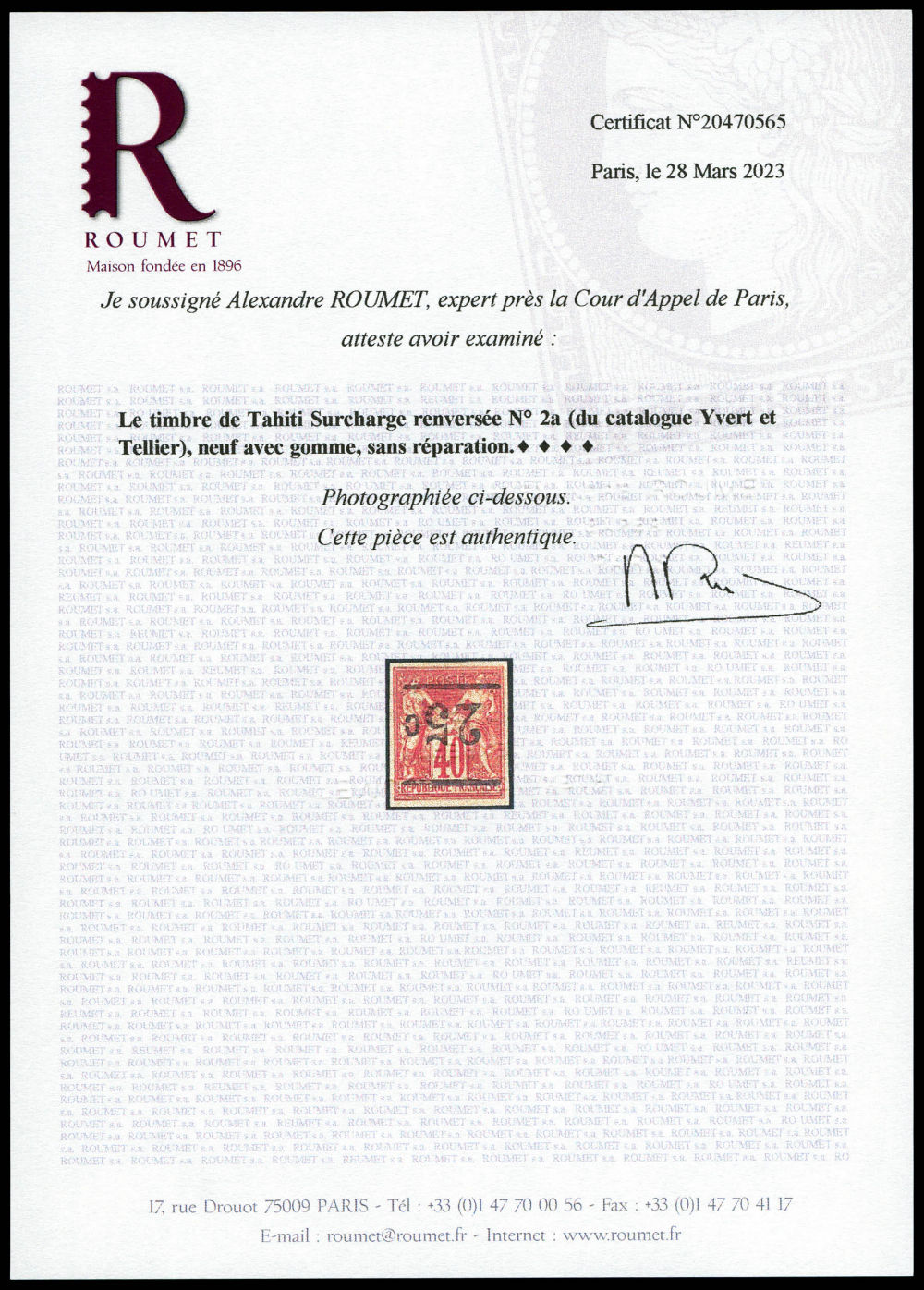 4028 og imageN°2a, 25c sur 40c rouge-orange, surcharge renversée. SUP. R.R. (signé Calves/Robineau/certificats) Qualité: * Cote: 7550 euros (Image) (imagea) (All Images)