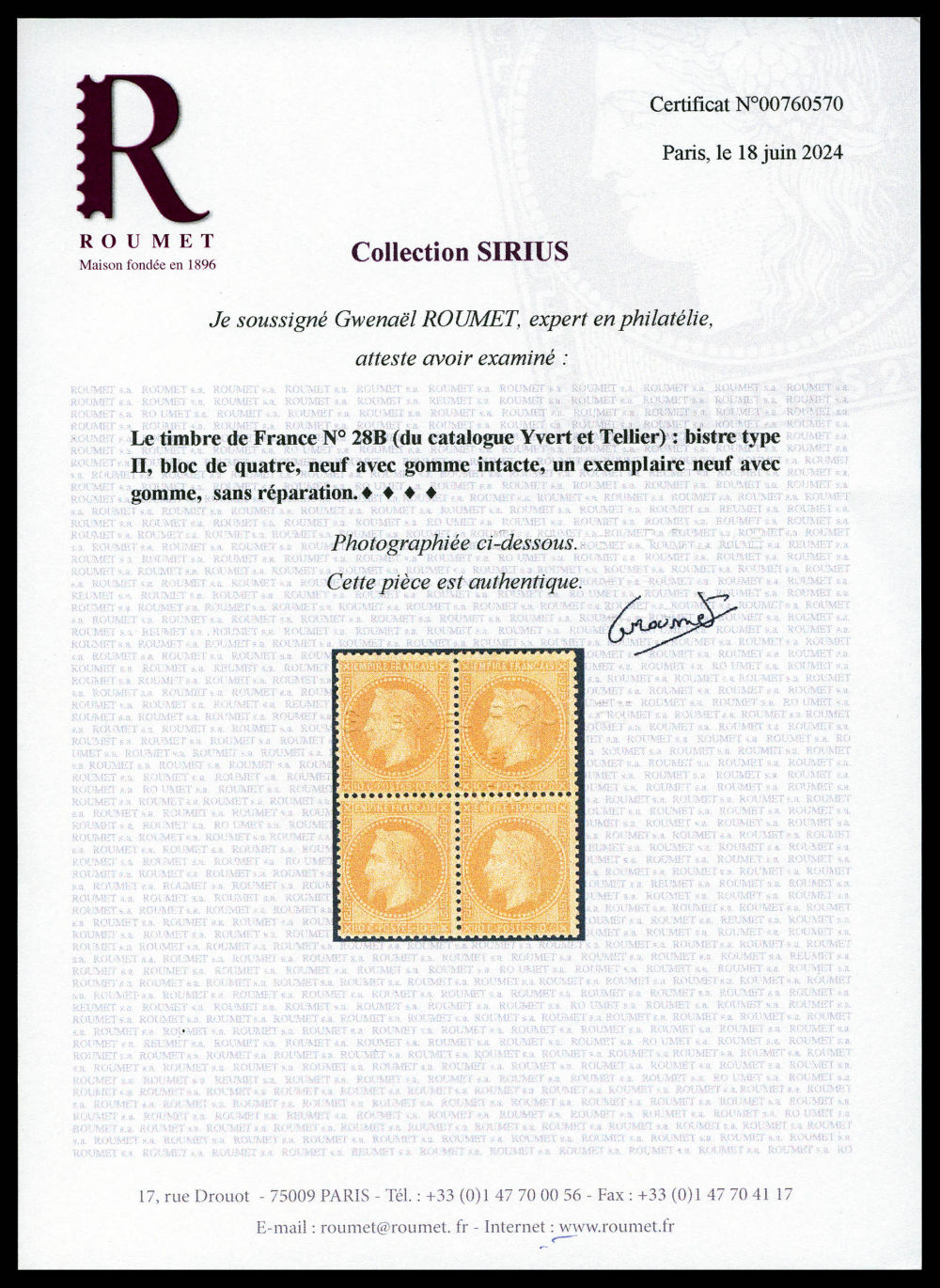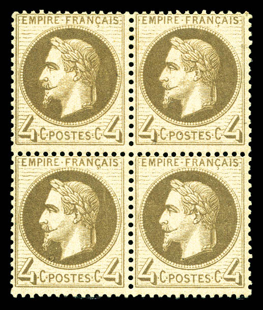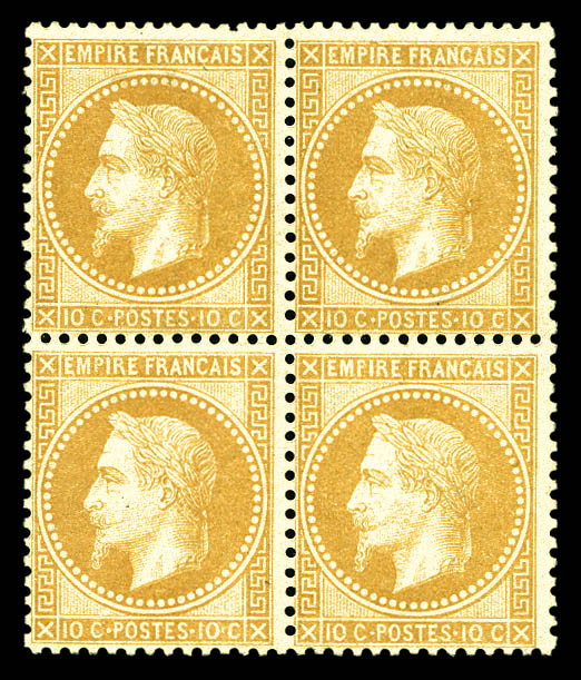 N°28B, 10c bistre type II en bloc de quatre (1ex*), fraîcheur postale. TTB (signé/certificat) Qualité: **