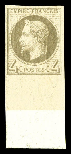 N°27Be, Rothschild, 4c gris non dentelé bas de feuille, fraîcheur postale, SUP (certificat) Qualité: **