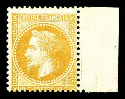 N°28B, 10c bistre type II, bord de feuille latéral. TTB (certificat) Qualité: ** (Image)