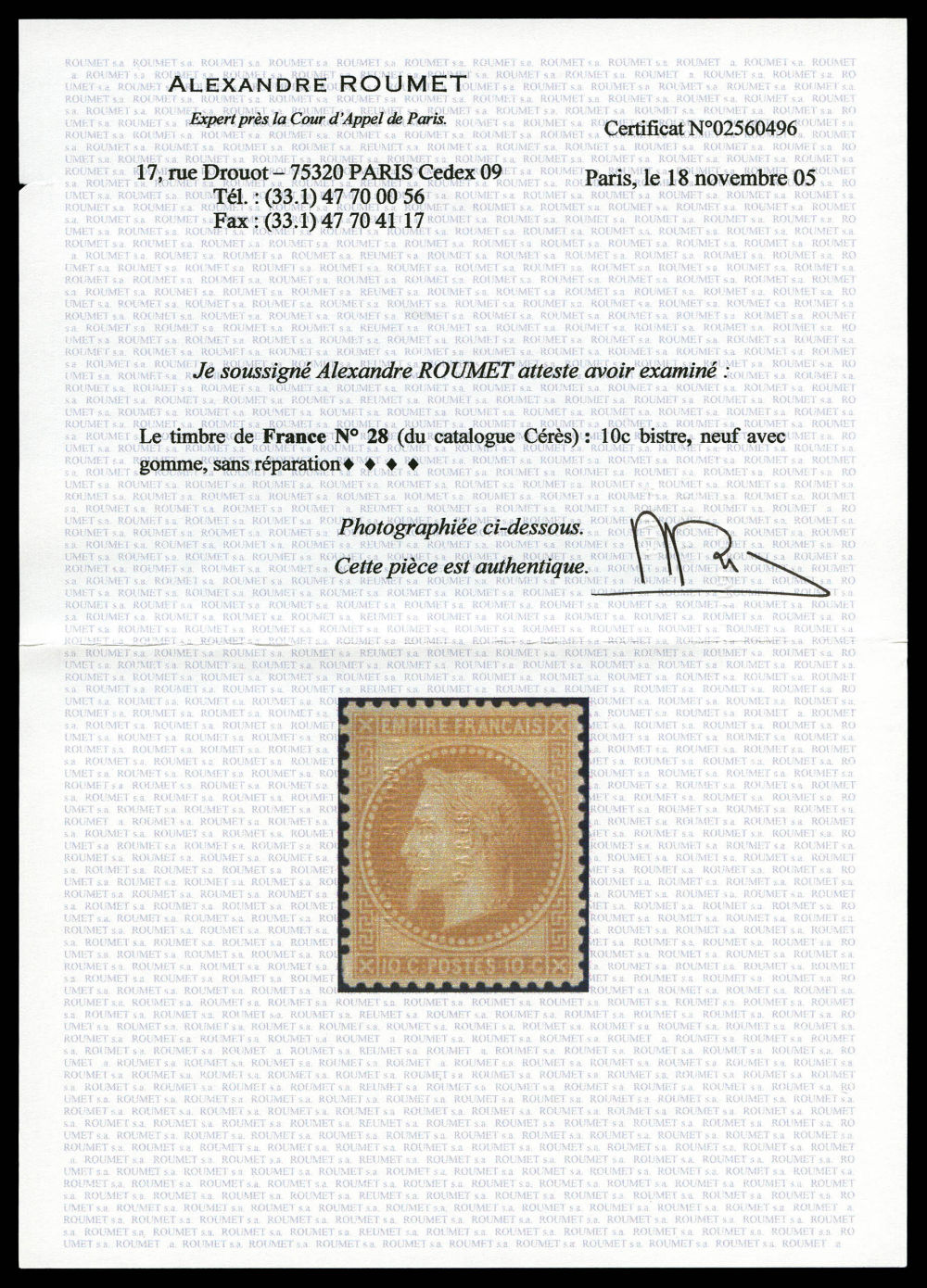 N°28Aa, 10c bistre impression de Rothschild, fraîcheur postale. SUP (certificat) Qualité: ** (Image)