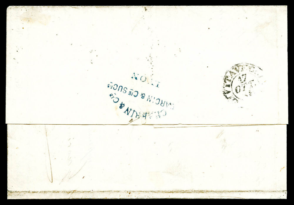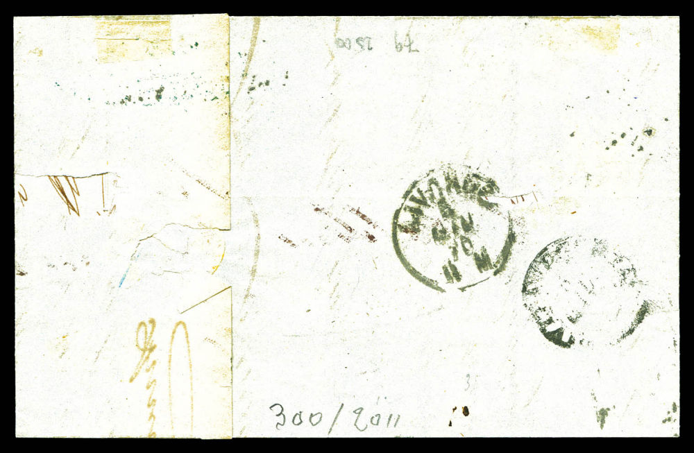 Affrt composé à 50c: 10c + 20c x2ex Empire Lauré (N°28+29) obl Chiffre 13 Italien de GENOVA + griffe FRANCIA VIA DI MARE + taxe '10' sur lettre de Marseille pour CIVITA VECCHIA. SUP (signé/certificat) Qualité: