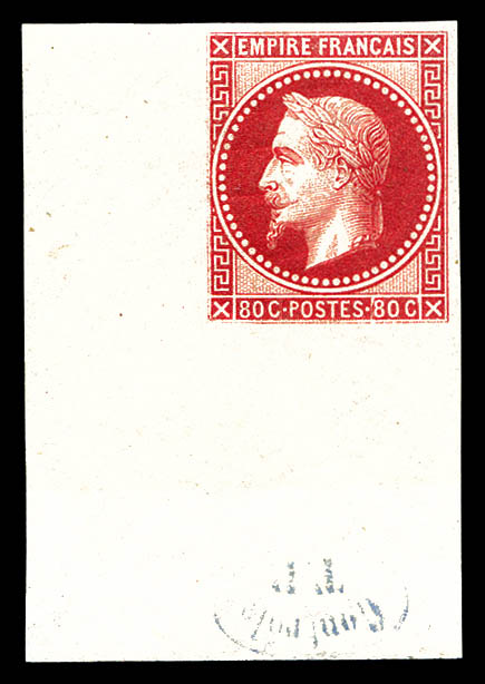 N°32b, Rothschild, 80c rose non dentelé, coin de feuille avec cachet de contrôle TP bleu, fraîcheur postale, SUP (certificat) Qualité: ** (Image) (imagea)