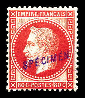N°32h, 80c rose surchargé 'SPECIMEN' en violet. SUP. R.R. (certificat) Qualité: * Cote: 2550 euros