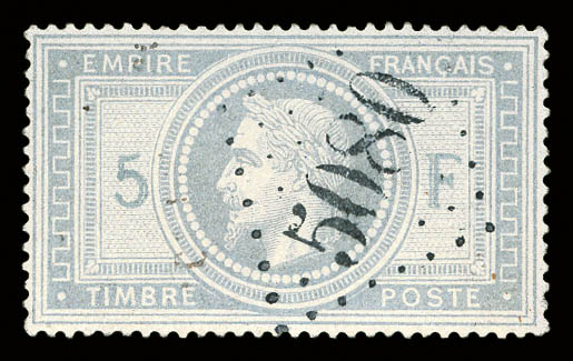 N°33, Empire, 5F violet-gris oblitération GC '5080' d'ALEXANDRIE posée, très bon centrage, SUP. R. (signé Calves/certificat) Qualité: Oblitéré (Image) (imagea)