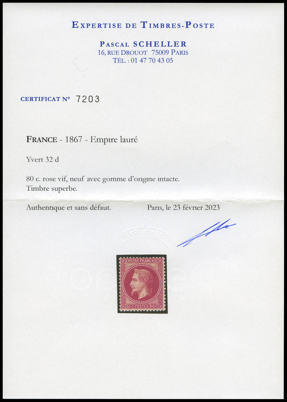 N°32d, 80c rose vif, fraîcheur postale. SUP (signé Brun/certificats) Qualité: ** (Image) (imagea)