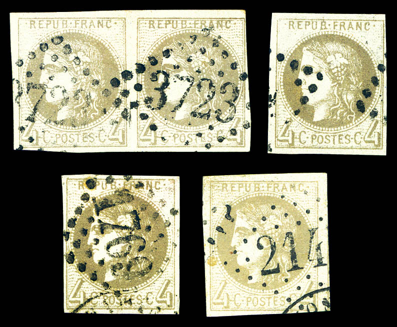 N°41: 4c Report 2: 5 exemplaires dont paire et nuances (dont gris-lilas). TB Qualité: Oblitéré Cote: 2170 euros