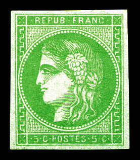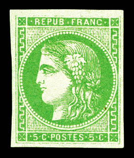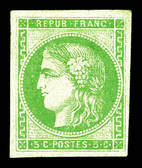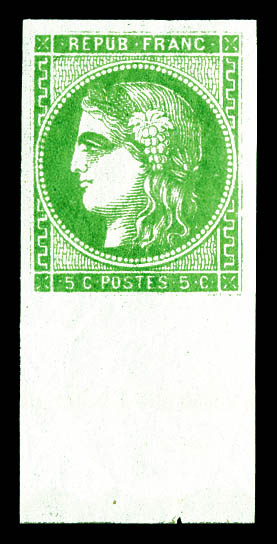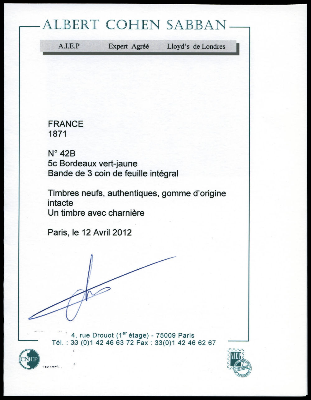 N°42B, 5c vert-jaune, grand bord de feuille, fraîcheur postale. SUP (certificat) Qualité: ** (Image) (imagea)