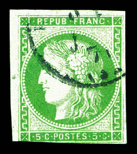 N°42A, 5c vert-jaune Report 1 obl càd, filet touché en bas, belle présentation. R.R (signé Calves/Scheller/certificat) Qualité: Oblitéré Cote: 7700 euros (Image) (imagea)