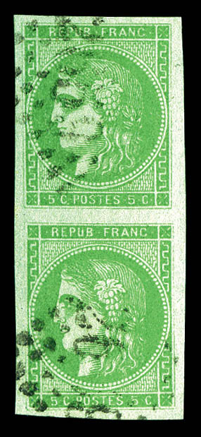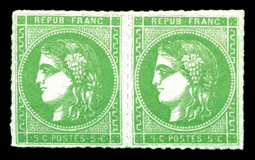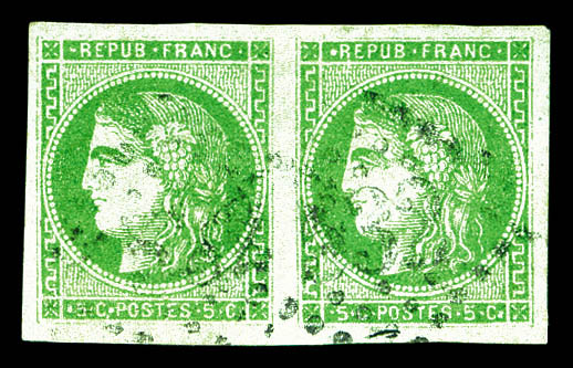 N°42B, 5c vert jaune en paire, jolies marges. SUP (signé Scheller/certificat) Qualité: Oblitéré