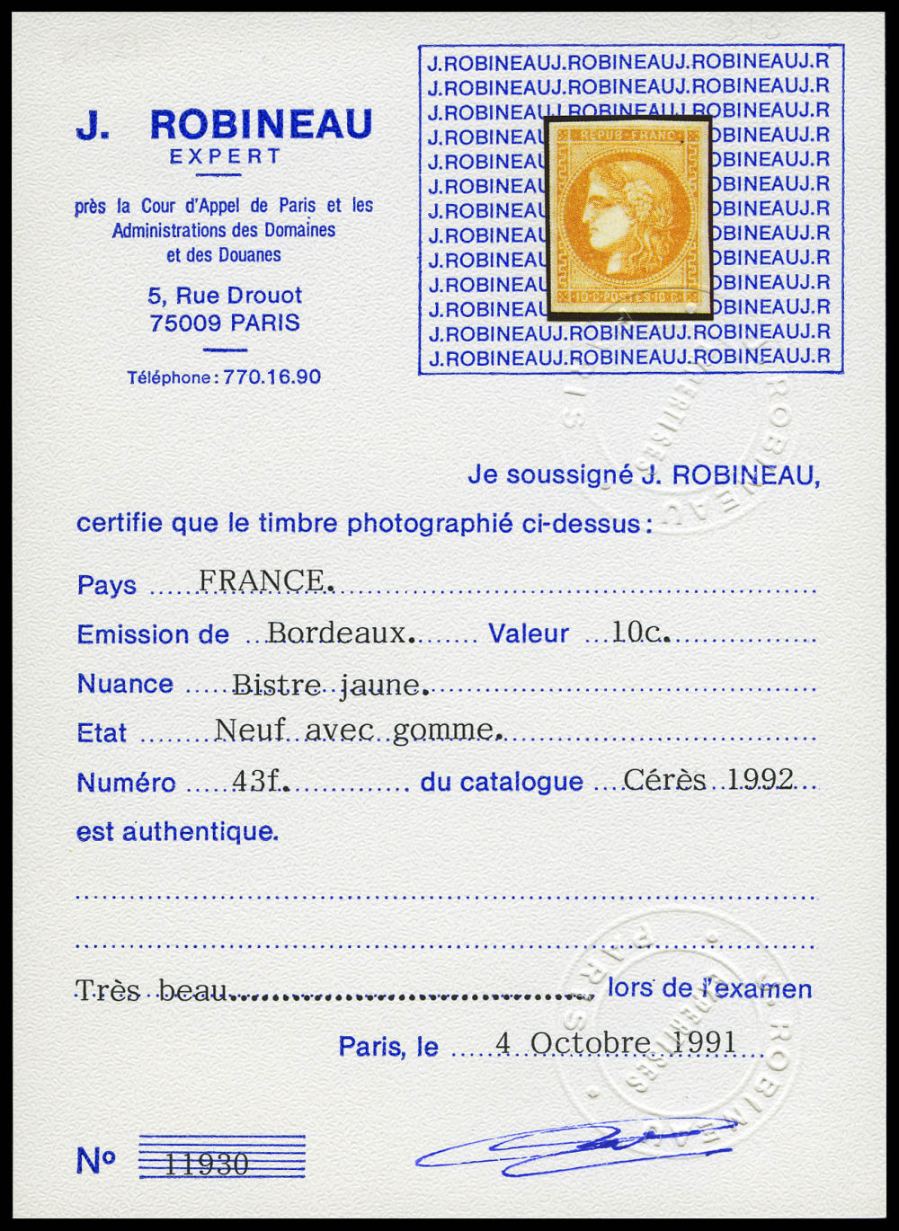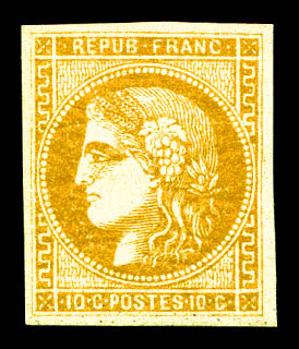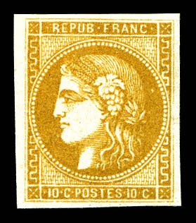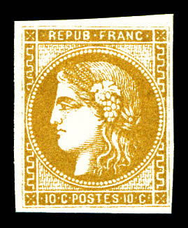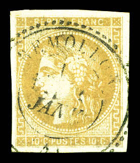N°43Ab, 10c bistre verdâtre, très jolie nuance, TTB (signé Calves/certificat) Qualité: * Cote: 2200 euros