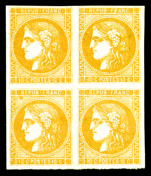 N°43Bb, 10c bistre orangé, bloc de quatre. TTB (certificat) Qualité: (*) (Image)