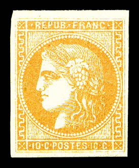 N°43B, 10c bistre-jaune Report 2, belles marges, fraîcheur postale. SUP (certificat) Qualité: **
