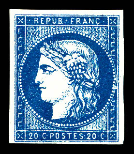 N°44A, 20c bleu Report I, infime froissure en marge inférieure, fraîcheur postale et très belle nuance intense. SUPERBE. R.R.R. (certificats) Qualité: ** (Image) (imagea)