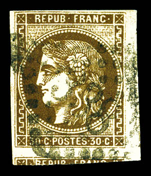 N°47d, 30c brun foncé, belles marges avec voisin. SUP (signé Calves/certificat) Qualité: Oblitéré Cote: 400 euros (Image)