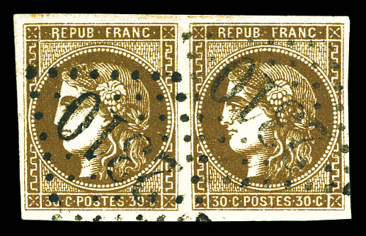 N°47e, 30c brun: R relié au cadre tenant à normal en paire obl GC 2310, TTB (signé Scheller/certificat) Qualité: Oblitéré Cote: 840 euros (Image) (imagea)