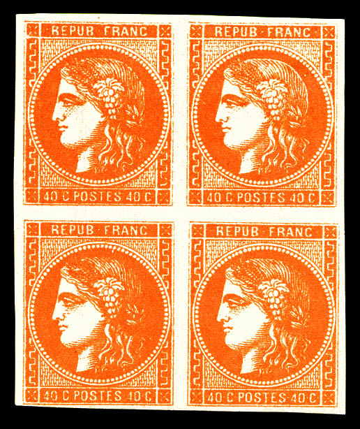 N°48, 40c orange en bloc de quatre (2ex*), jolie pièce, FRAÎCHEUR POSTALE, SUP (certificat) Qualité: **