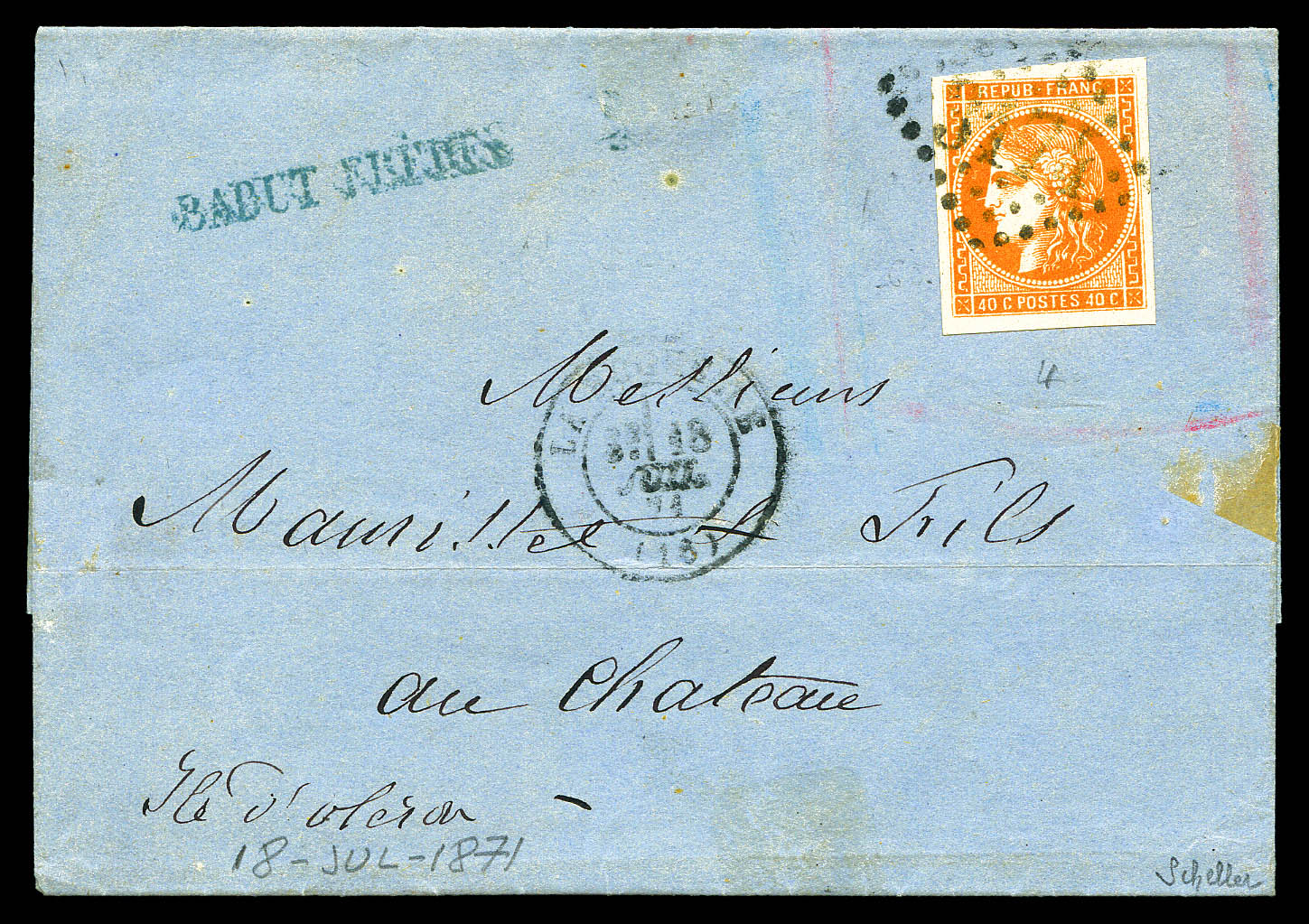 N°48, 40c obl GC 3174 sur lettre de LA ROCHELLE pour l'Ile d'Oleron. TB (signé Scheller) Qualité: Oblitéré Cote: 250 euros (Image)