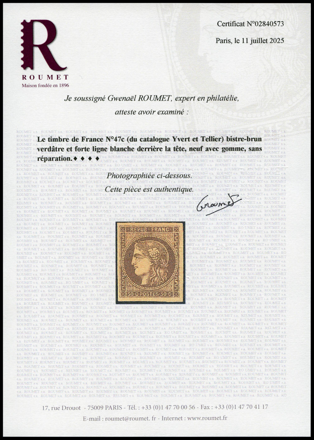 N°47d, 30c brun-foncé, TB (signé Brun/certificat) Qualité: * Cote: 700 euros (Image)