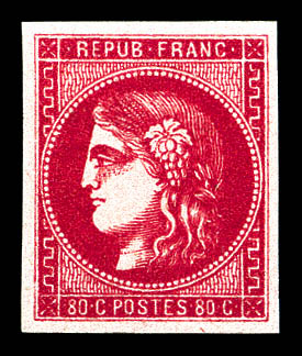 783 og imageN°49g, 80c rose-vif: Boule blanche sous le menton, case 3, défauts mais superbe d'aspect. TTB. R.R. (certificat) Qualité: * Cote: 27000 euros (Image) (imagea) (All Images)