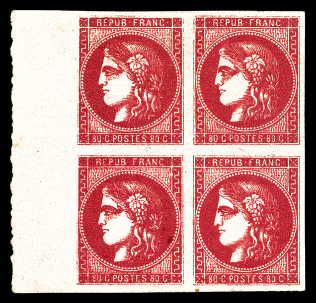 785 og imageN°49h, 80c rose carminé foncé en bloc de quatre bord de feuille latéral, nuance exceptionnelle. SUPERBE. R. (signé Calves/certificats) Qualité: * (Image) (imagea) (All Images)