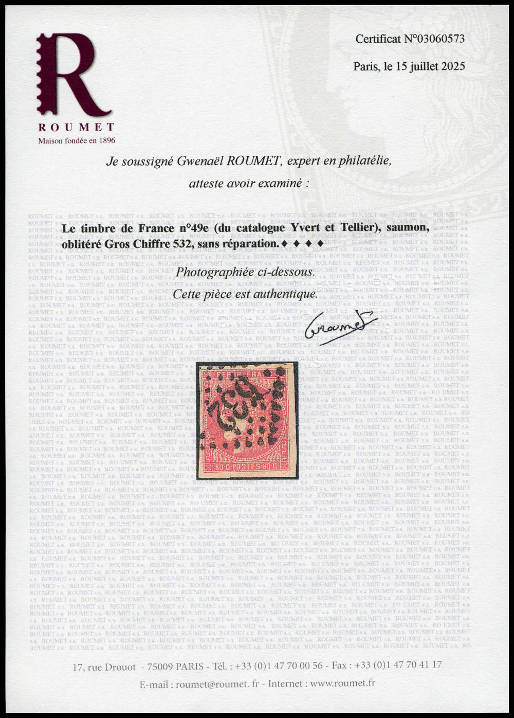 781 imageN°49e, 80c saumon obl GC 532, jolie nuance, TTB. R. (certificats) Qualité: Oblitéré Cote: 3000 euros (Image) (imagea) (All Images)