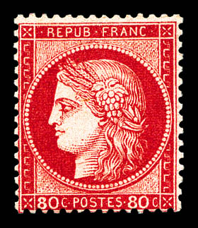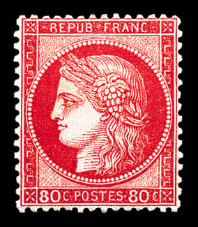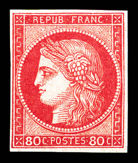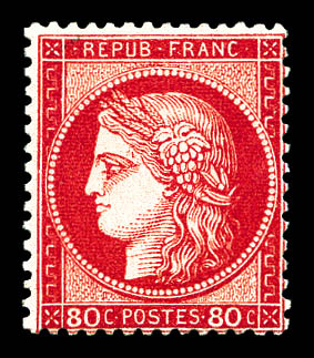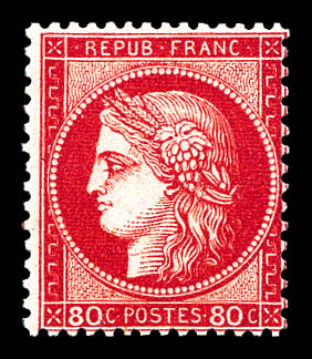 N°57b, 80c carmin vif, bord de feuille, exceptionnelle couleur, fraîcheur postale. SUP. R.R. (certificats) Qualité: ** (Image) (imagea)