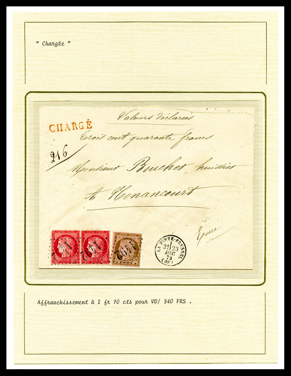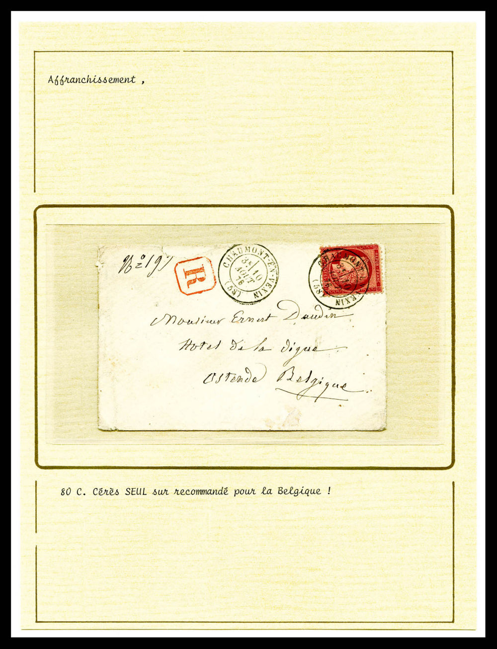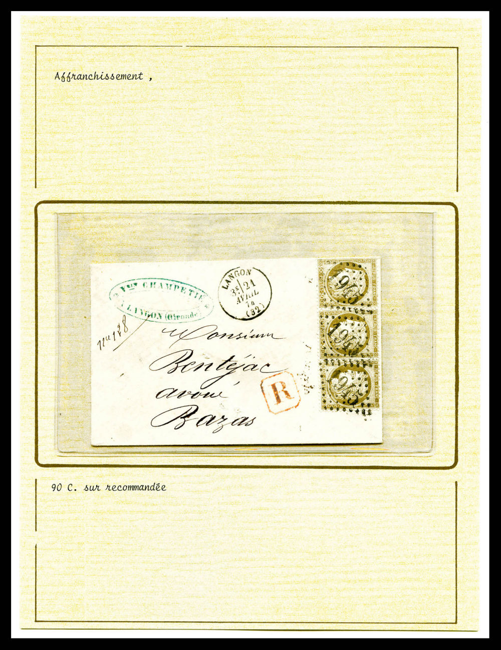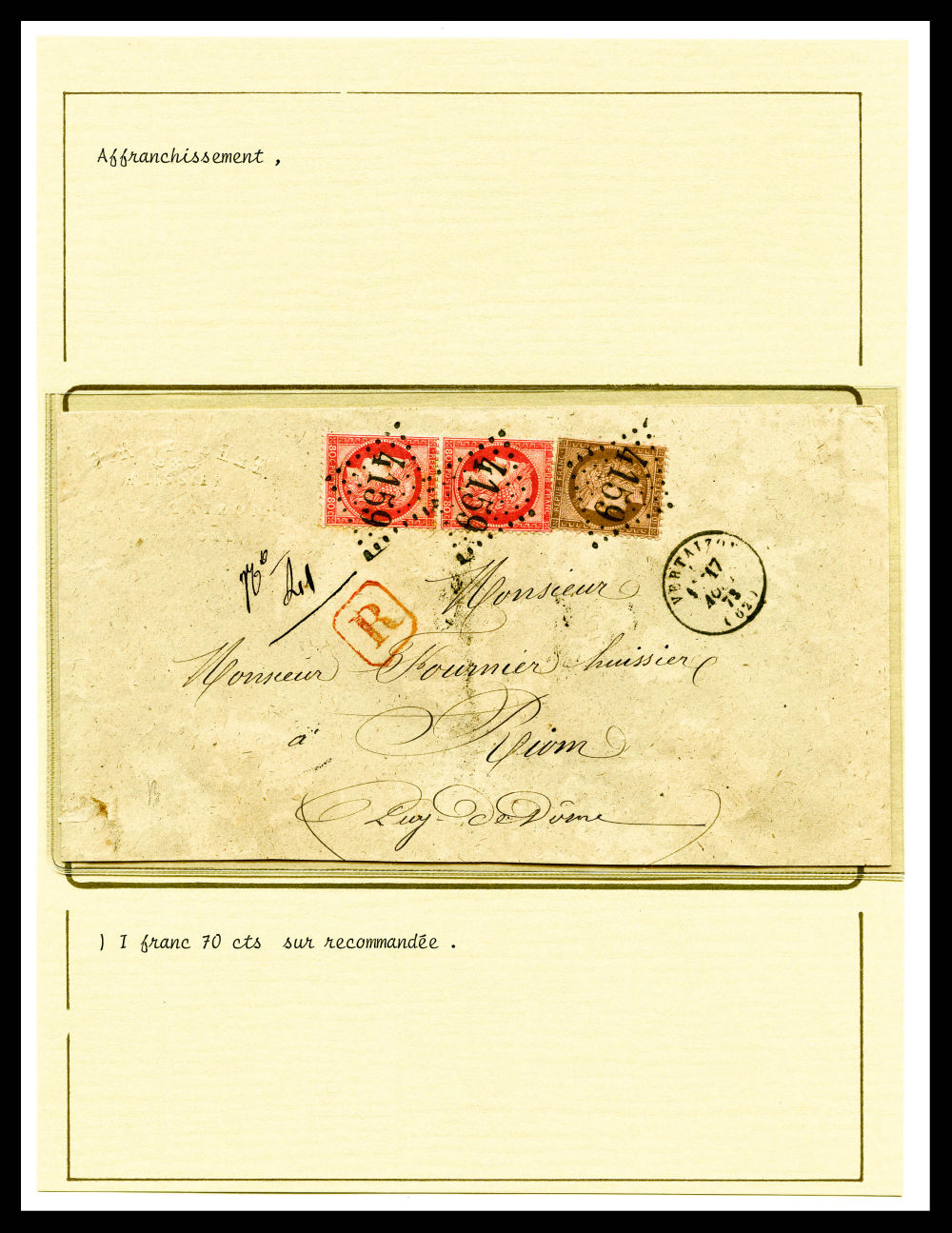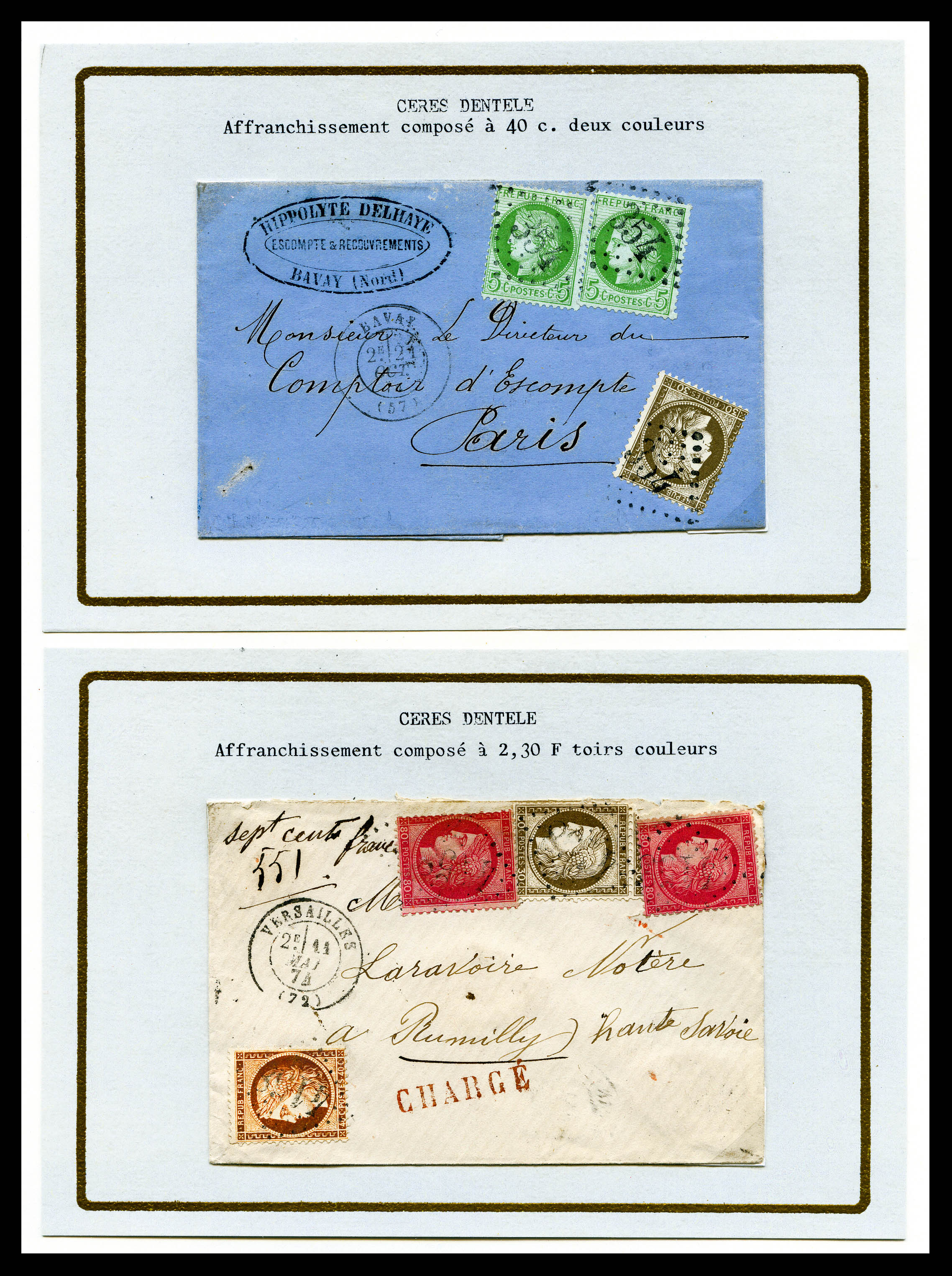 Cérès dentelé: Lot de 7 lettres dont chargées, recommandées présentées sur pages de presentation. TB Qualité: Oblitéré (Image) (imagea)