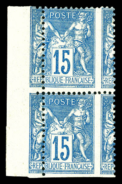 983 nh imageN°101, 15c bleu, paire piquage à cheval + ex dentelé sur 3 cotés, bdf. SUP (signé Calves/certificat) Qualité: ** (Image)