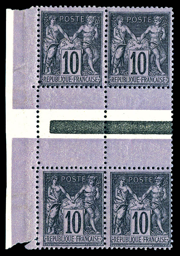 988 nh imageN°103b, 10c noir sur lilas: 2 paires Type I et II se tenant en bd4 bdf, fraîcheur postale. SUP (certificat) Qualité: ** Cote: 1500 euros (Image) (imagea) (All Images)