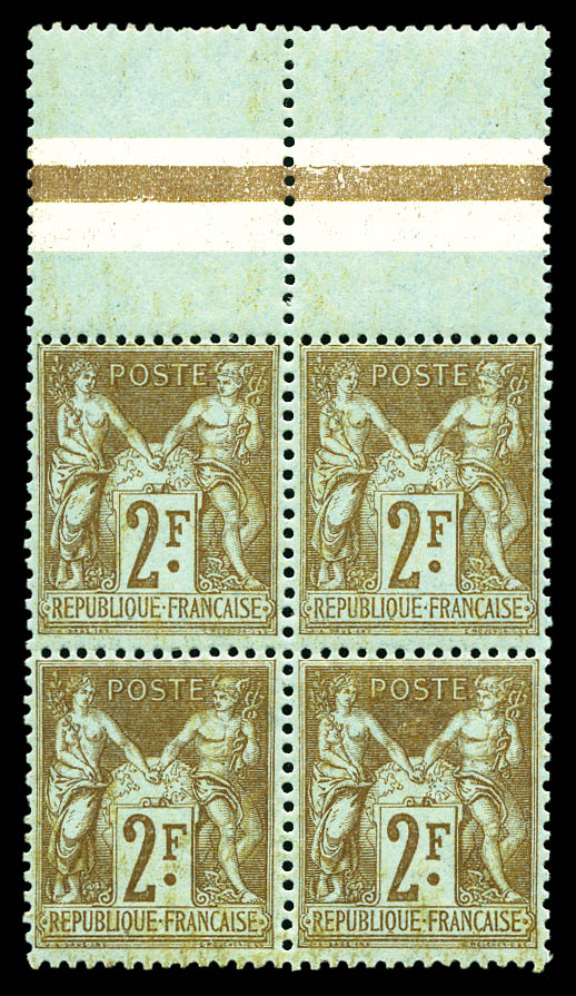 990 nh imageN°105, 2F bistre sur azuré en bloc de quatre bord de feuille, bon centrage, fraîcheur postale, SUP (certificat) Qualité: ** (Image)